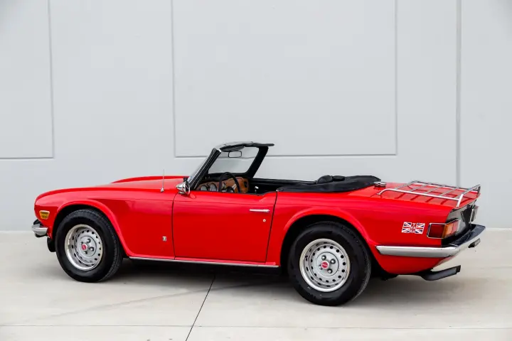 This TR6 hails from south Texas and is void of rust and rust history. The car also shows no signs of an accident history. The car comes with a nice interior ,a good soft top. Tires are deep in tread. The car has a strong run and drive with a strong engine ,quiet transmission with good clutch and brakes. The chrome is good on the car. The body panels are straight with good factory gaps.