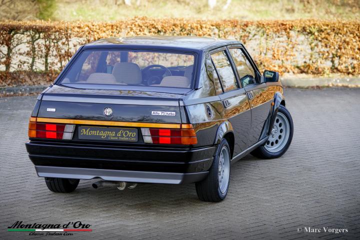 De exacte productiecijfers van de Alfa Romeo 75 1.8 Turbo zijn niet bekend, maar Alfa Romeo moest minstens 5000 auto’s bouwen om te voldoen aan de FIA-homologatie voor Groep A-toerwagens. Onder de motorkap bevindt zich de 1800 cc viercilinder-lijnmotor, met een Garrett T3-turbocompressor en intercooler, die 155 pk en 226 Nm koppel levert.