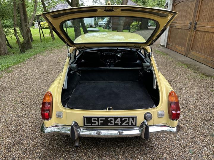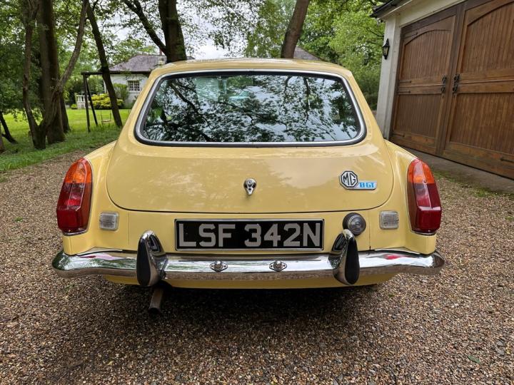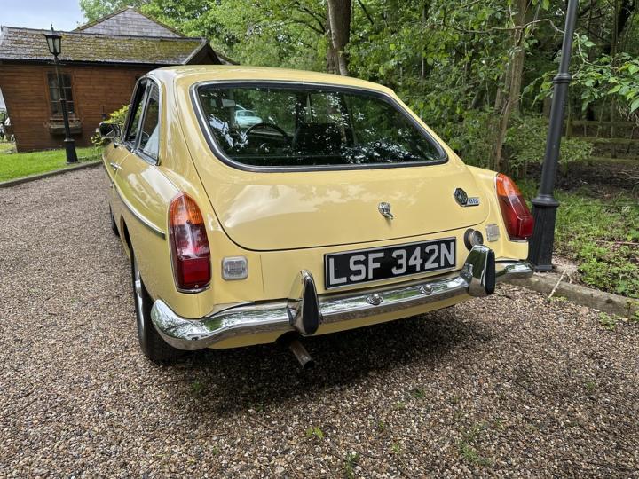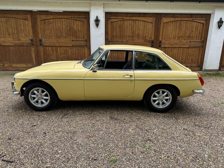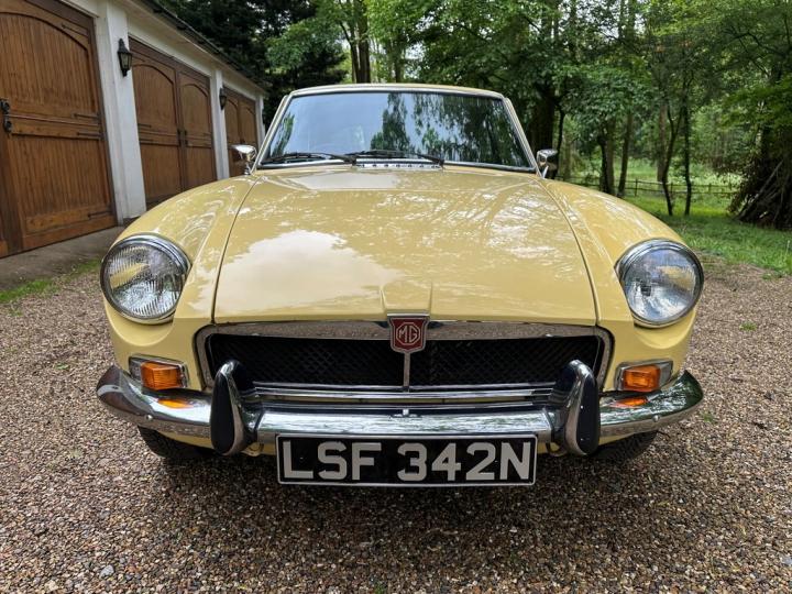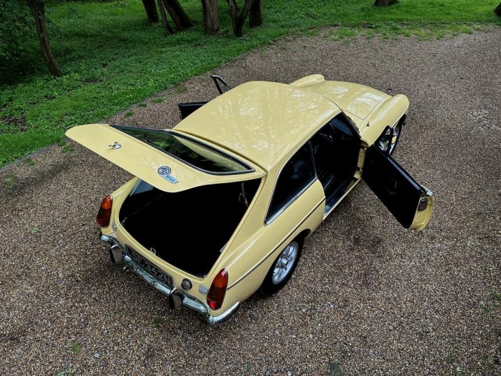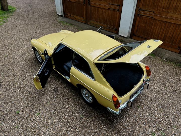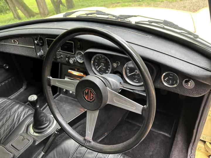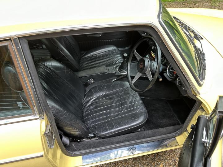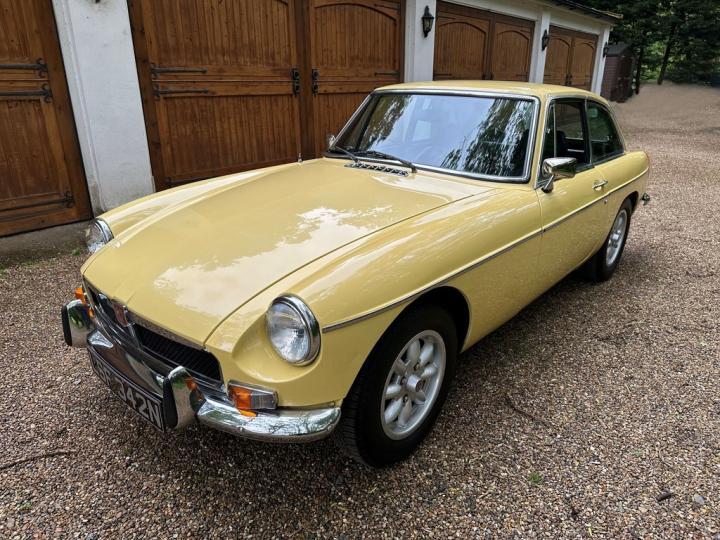 MG BGT, late 1974 build, delivered new to Appleyard (Wishaw) Ltd of Lanarkshire and sold to original Lady owner in January 1975 until 1984, second Lady owner since covering the last 4 decades, last of the original chrome bumper models, overdrive, bespoke professional colour order to Primula Yellow in the 80’s, structurally sound example having had sills and castle rail works in early 2000’s, coachwork still presenting nicely with only some imperfections commensurate with age & mileage, genuine 71,550k from new, tight engine with good oil pressure housed within tidy engine compartment, smooth 4 synchromesh gearbox with good working overdrive and quiet rear axle, Black leather interior trim in good condition with clean original dashboard and period steering wheel, nice GB alloy wheels, history file including original ‘passport to service’ wallet, old mot’s, tax discs and structural works documentation, delightful drive with Mot until April 2025, just arrived,