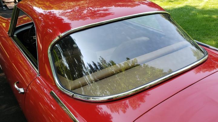 The lack of rust on this car is one of the major reasons why it would be such an excellent candidate for restoration. The chassis on this car is completely solid, and the car really has no rust on it anywhere to be seen. The great original condition of the aluminum coachwork is another factor that would make this car a great candidate for a full restoration. The Touring Superleggerra coachwork is absolutely beautiful, with very little dents and dings, extremely rare for a car with such a soft body. The panel fit is like original and quite excellent, showing there has never been any major work or accident damage anywhere on the car. This car is also totally complete and assembled minus the engine. It is always preferable to start off with a car put together, whether you are restoring it from the ground up or just putting it back together.