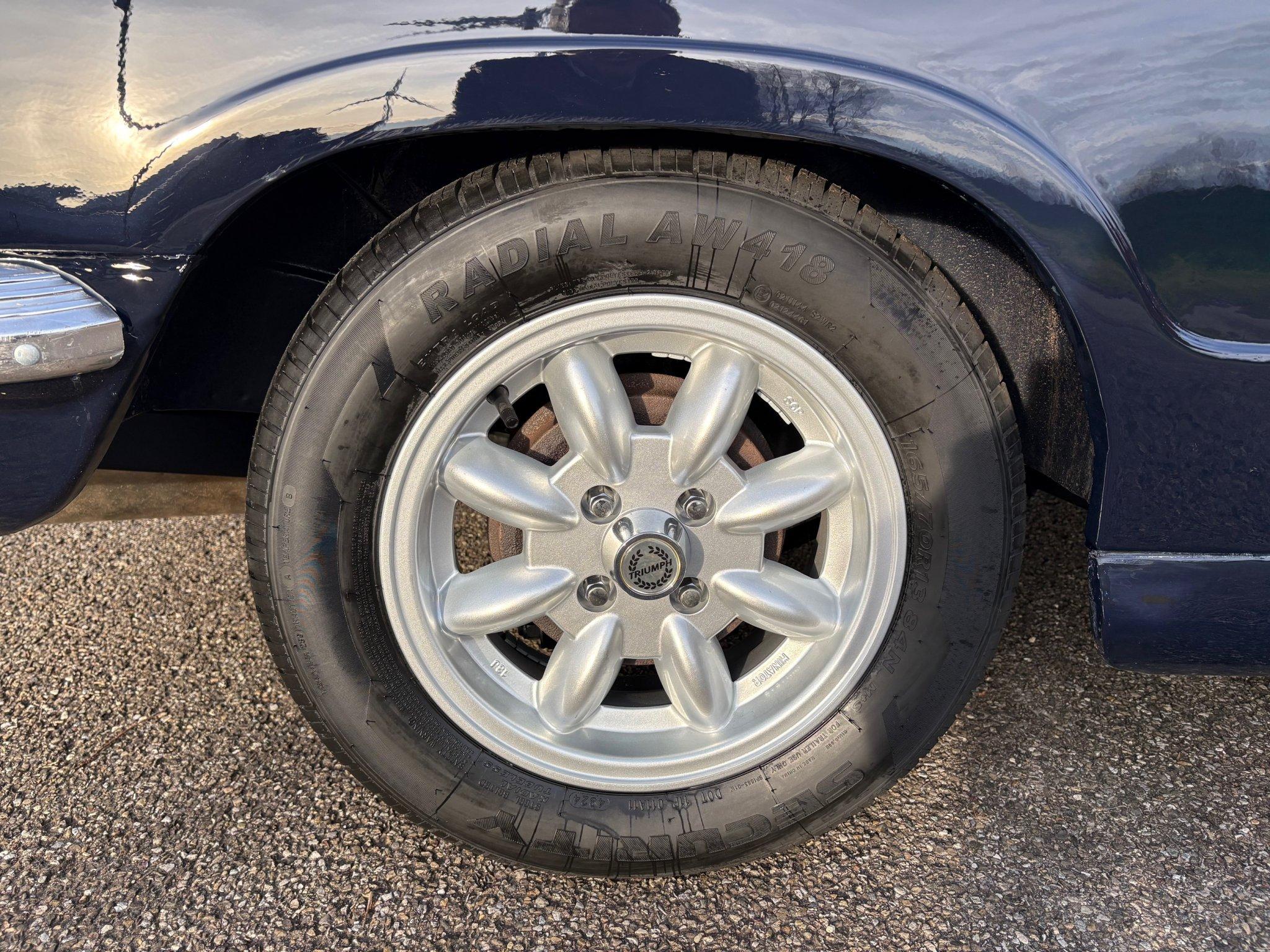 Nieuwe Mini-Lite velgen met nieuwe banden en een houten Moto-Lita stuur.