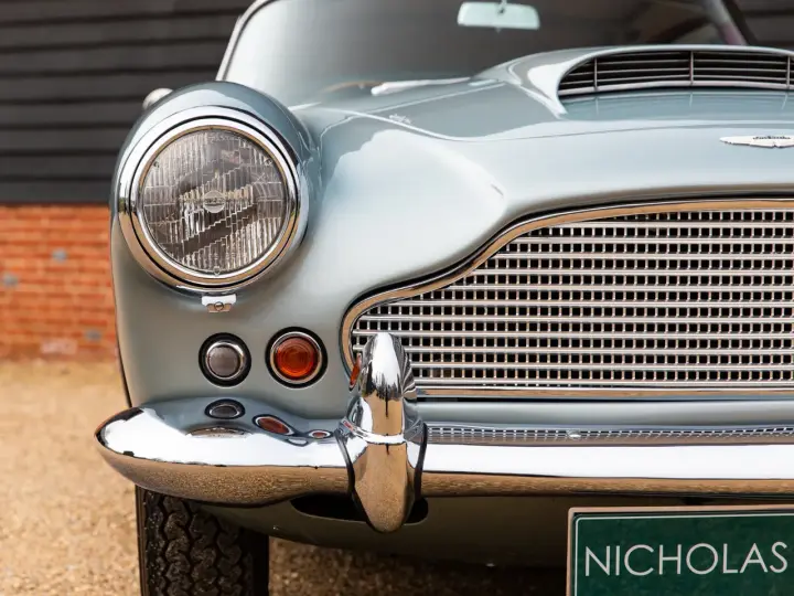 The Series 1 DB4 we are delighted to offer, an early example identifiable by the high profiled and front opening ‘crocodile’ bonnet and absence of door window frames, for many years formed part of a UK based classic car collection and was frequently shown at concours events including at Goodwood, during the 2000’s. Purchased by ourselves and re-sold in 2017, this exceptional car was concurrently bare metal repainted in its original colour of Snow Shadow Grey and the interior entirely retrimmed, in appropriate Burgundy Connolly hides and re-carpeted, as originally specified.